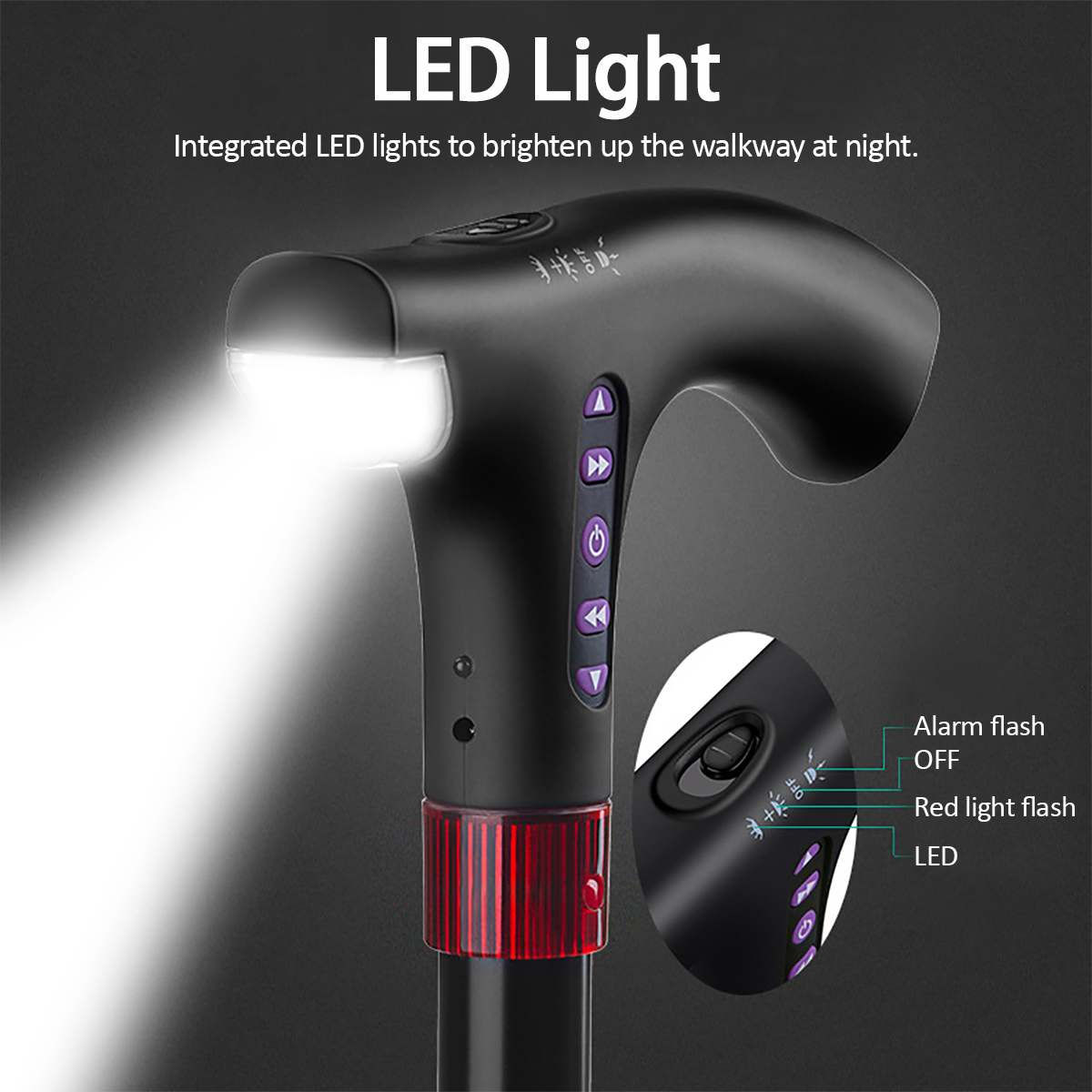 Smart FM Radio Old Man Woman Walking Stick Lighting Alarm – 3589